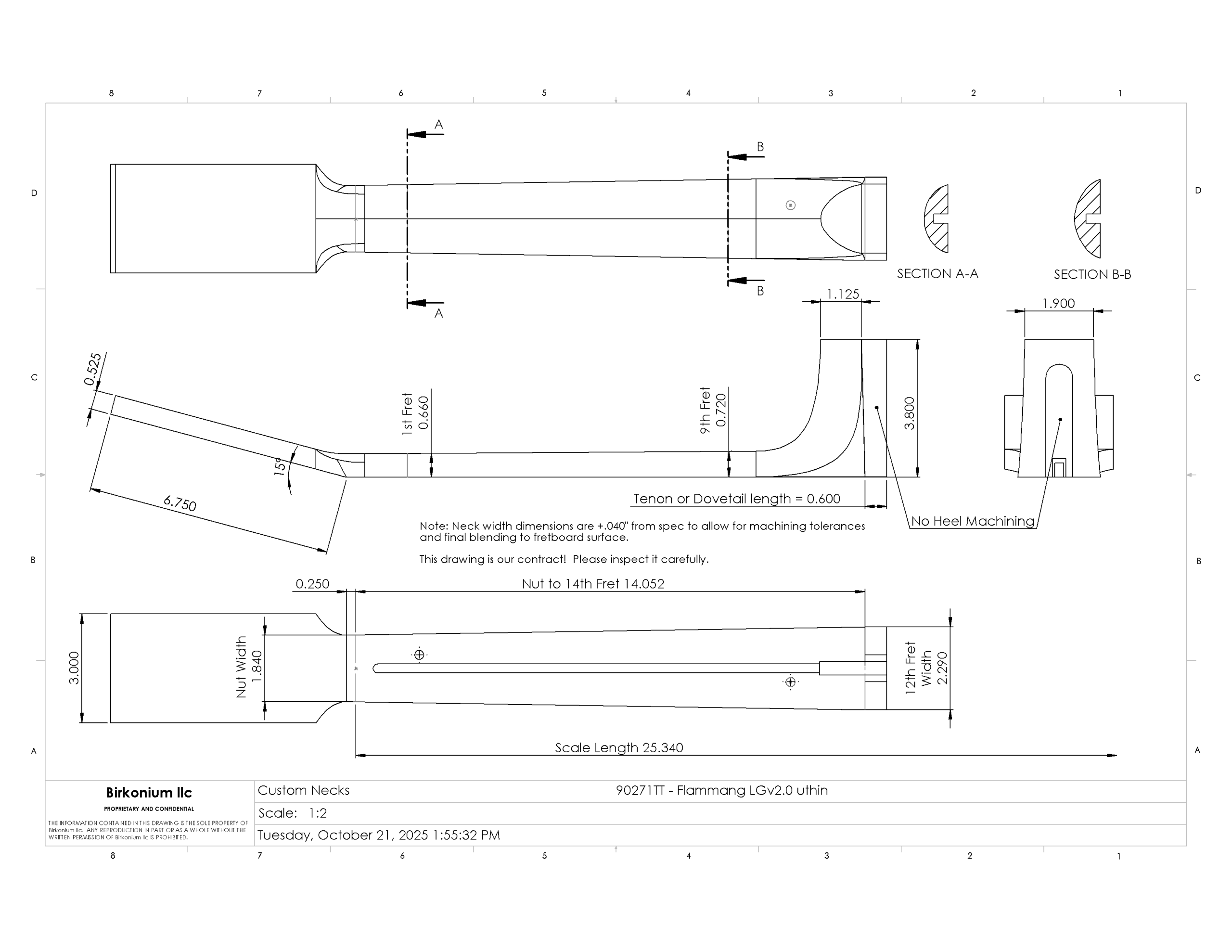 90271 is .750″ thick at the 1st fret and .9″ at the 9th